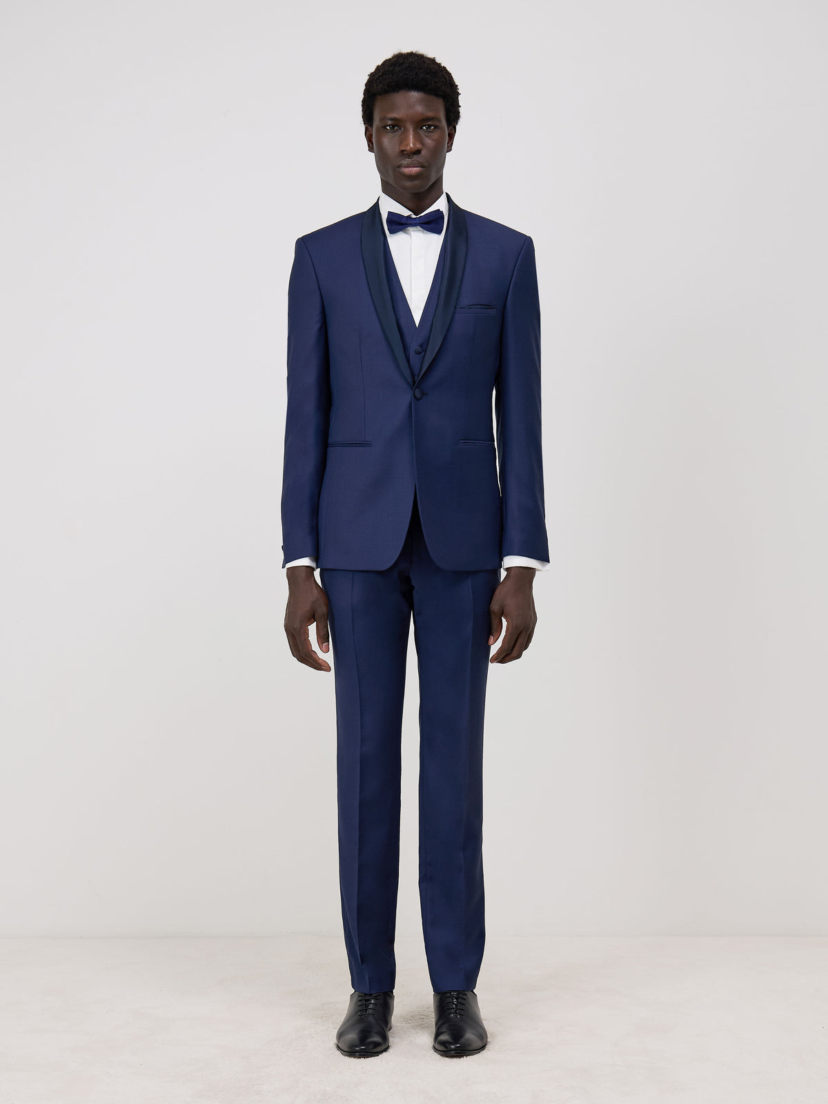 Absolument. Le smoking bleu nuit représente une alternative élégante au noir traditionnel, particulièrement adapté aux événements semi-formels et aux réceptions diurnes.