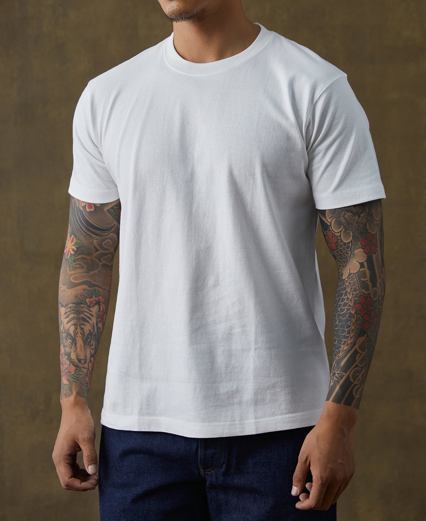 • Meilleur T-shirt lourd (heavyweight) : Buck Mason – Field-Spec Tee – Jersey 220 gsm, look workwear, se patine avec le temps.